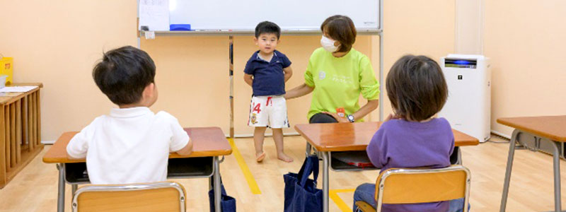年々少からの親子分離型の教室です。「手」「身体」「感覚・認知」に「言語」「暗算」が加わります。高度な器用さが必要になる動作や、自分の考えをまとめて人前で発表するなど、試行錯誤しながら課題をやり抜くカリキュラムです。小学校入学後はもちろん、生涯にわたって活かせる思考力を身につけていきます。