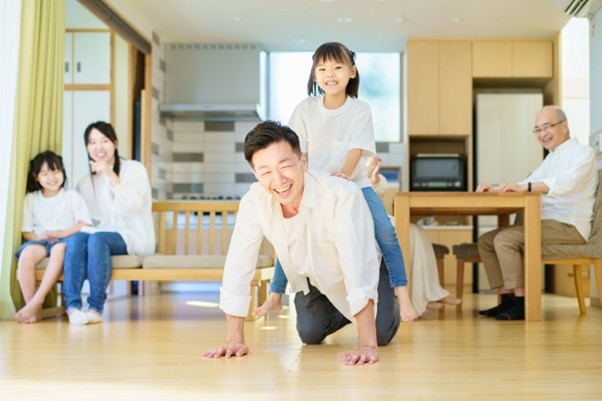 日常生活で子どもと一緒に遊ぶと、子どもの能力を高めるためのサポートができるため、子どもと一緒に楽しむ遊びの時間を持ちましょう。